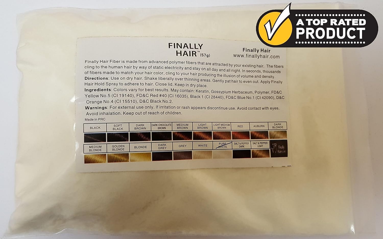 Hair Building Fibers - White Refill Pack (50g) for Grey Root Concealment and Thinning Hair Coverage by Finally Hair