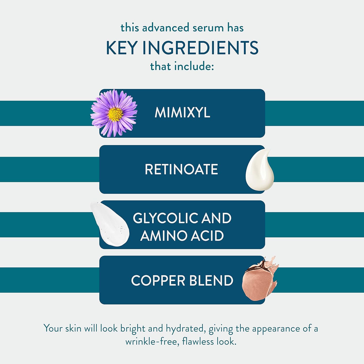 - GENTLE ANTI-AGING SKINCARE: Our anti-aging serum for women and men contains nourishing mimixyl, a blend of plant-based retinoids. Formulated with glycolic acid, this serum works to reduce sun damage to leave your face with a smoother texture.