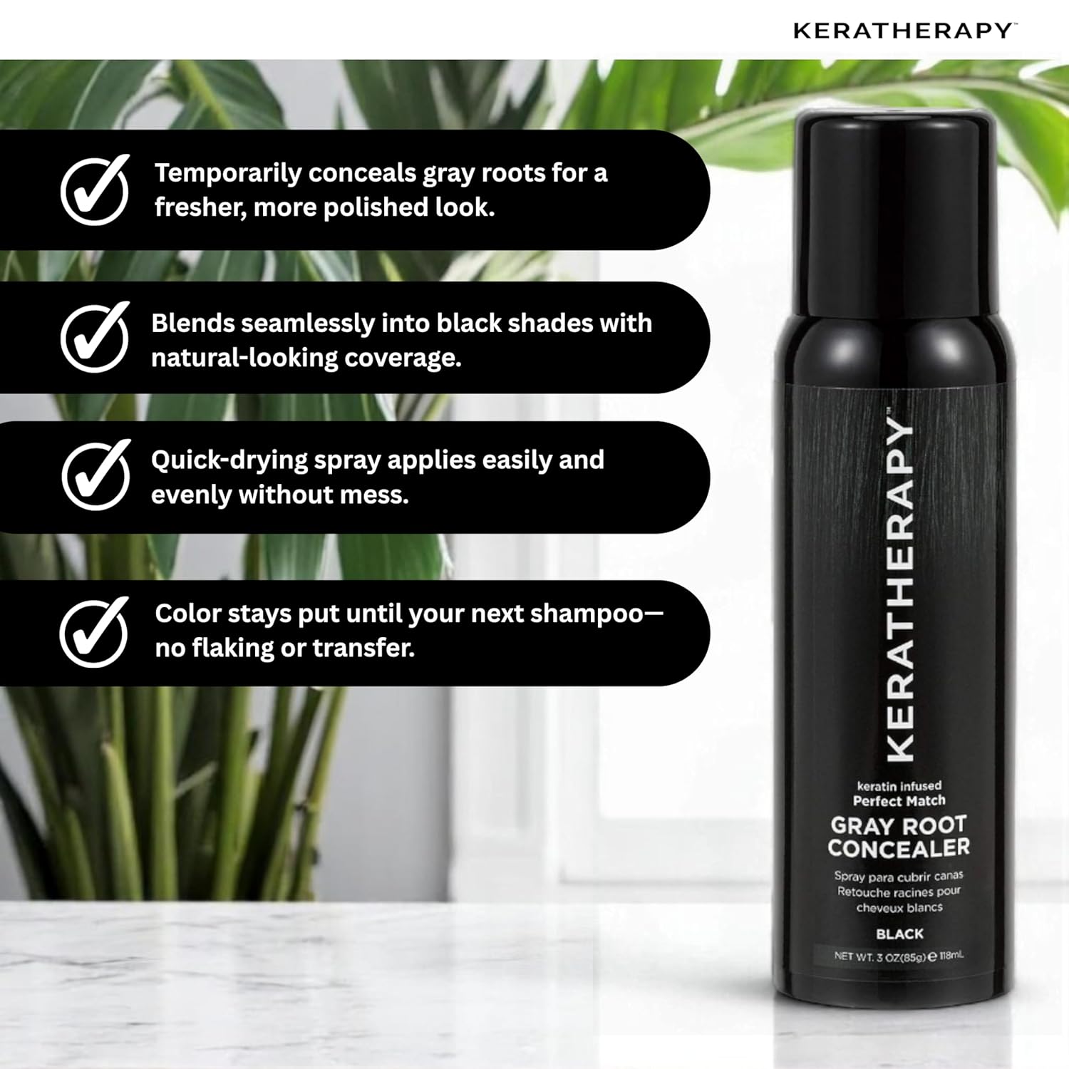 Keratherapy Keratin Infused Perfect Match Gray Root Concealer Spray, Black, 3 oz, 118 ml - Root Cover Up Spray to Hide Gray Roots - Keratin Therapy Hair Darkening & Temporary Scalp Concealer