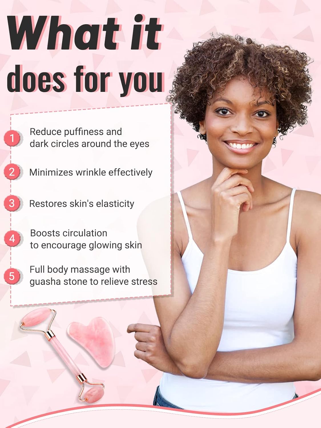 - √ A Meaningful & Lovely Gift - Give the special one a gift of love. The pink jade roller set comes in a beautifully designed package, which can be a great holiday gift for women in different festivals, like Christmas, Birthday, Women's Day, New Year,Valentine's Day,etc.