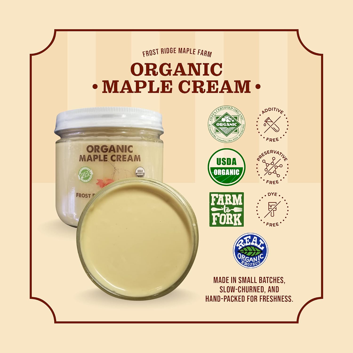 Frost Ridge Maple Farm, Organic Maple Cream, Grade A, One Pound (16 oz)