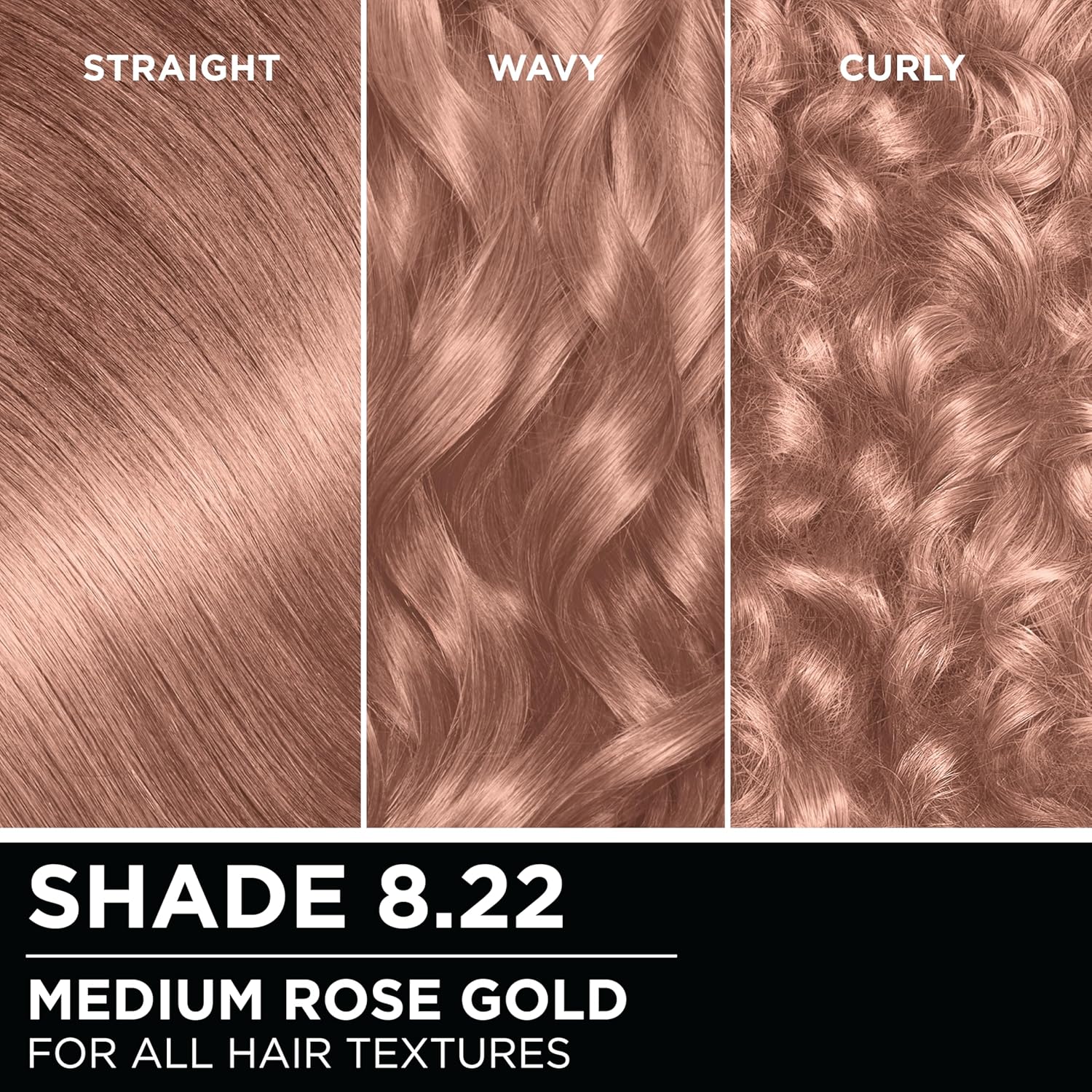 Garnier Hair Color Olia Ammonia-Free Brilliant Color Oil-Rich Permanent Hair Dye, 8.22 Medium Rose Gold, 2 Count (Packaging May Vary)