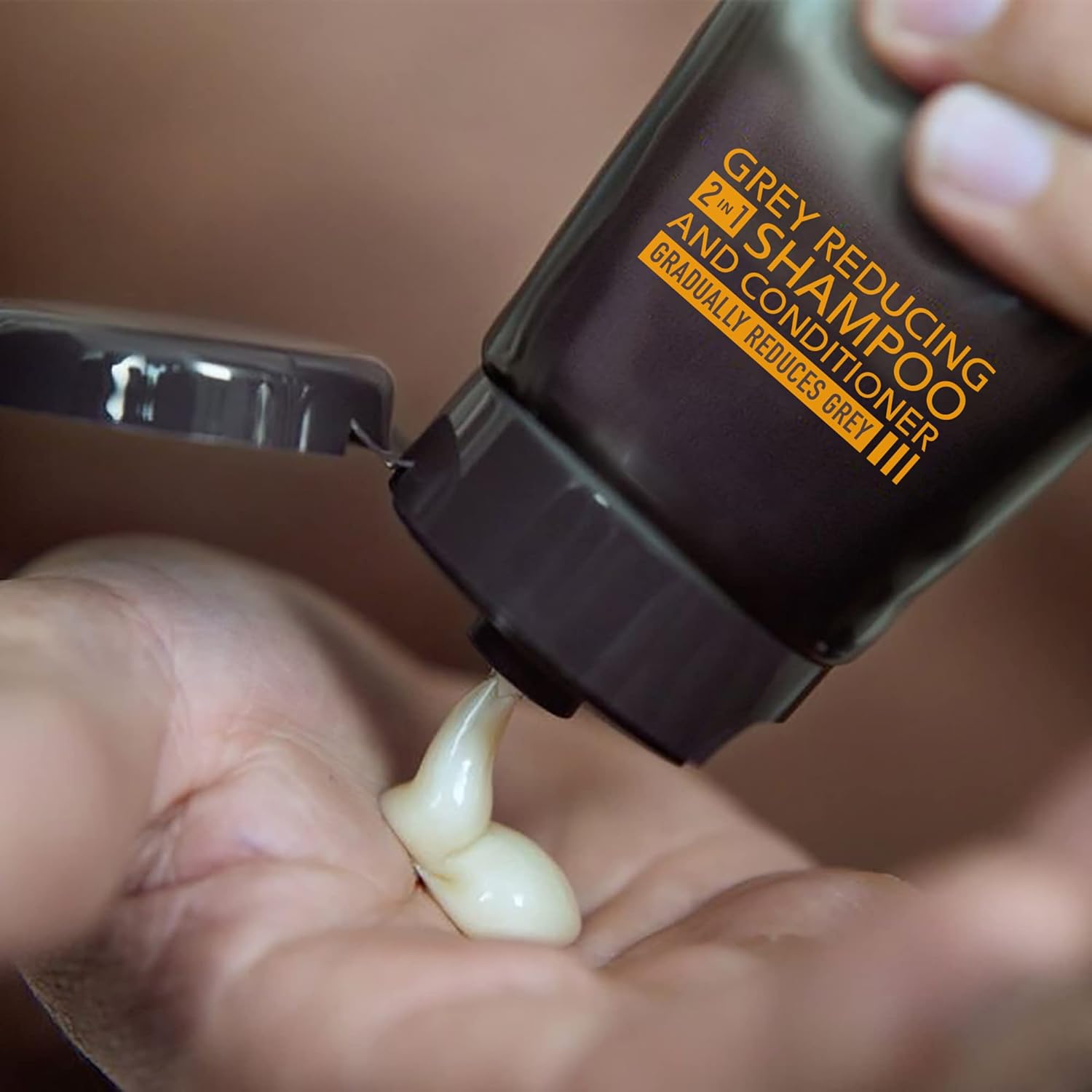 - Innovative, patented beard wash and shampoo that gradually reduces grey with each wash