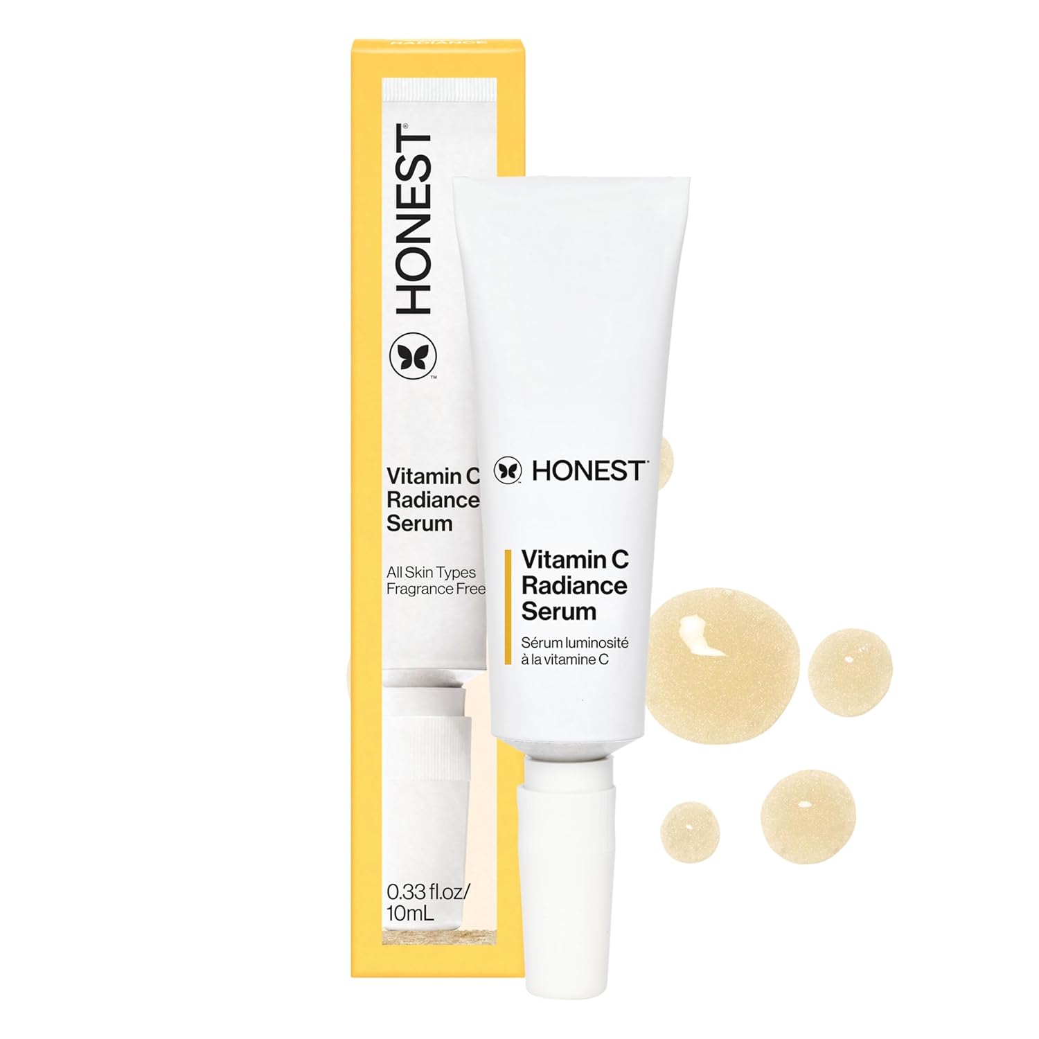 Honest Beauty Mini Vitamin C Radiance Serum | Improves + Brightens Skin Tone and Complexion | Gentle for Sensitive Skin, Fragrance Free, Vegan | Travel Size, .33 fl oz