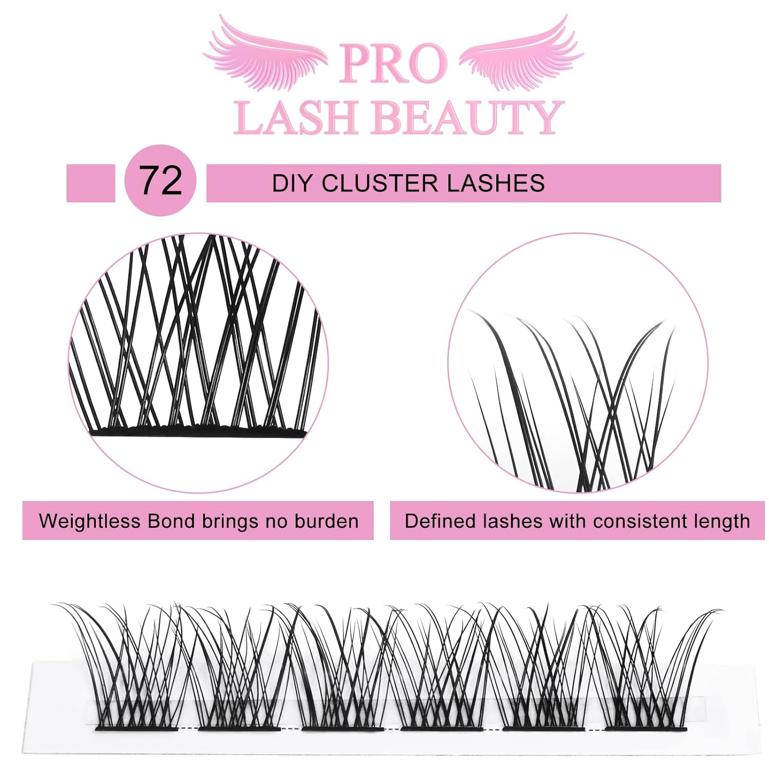 - 72 Pcs Cluster Lashes: The Cluster lashes are avaiable now! Different from other brands, PRO LashBeauty can provide 72 pcs in one tray! Mix Length from 8mm to 16mm. You can get more lashes and use more times.