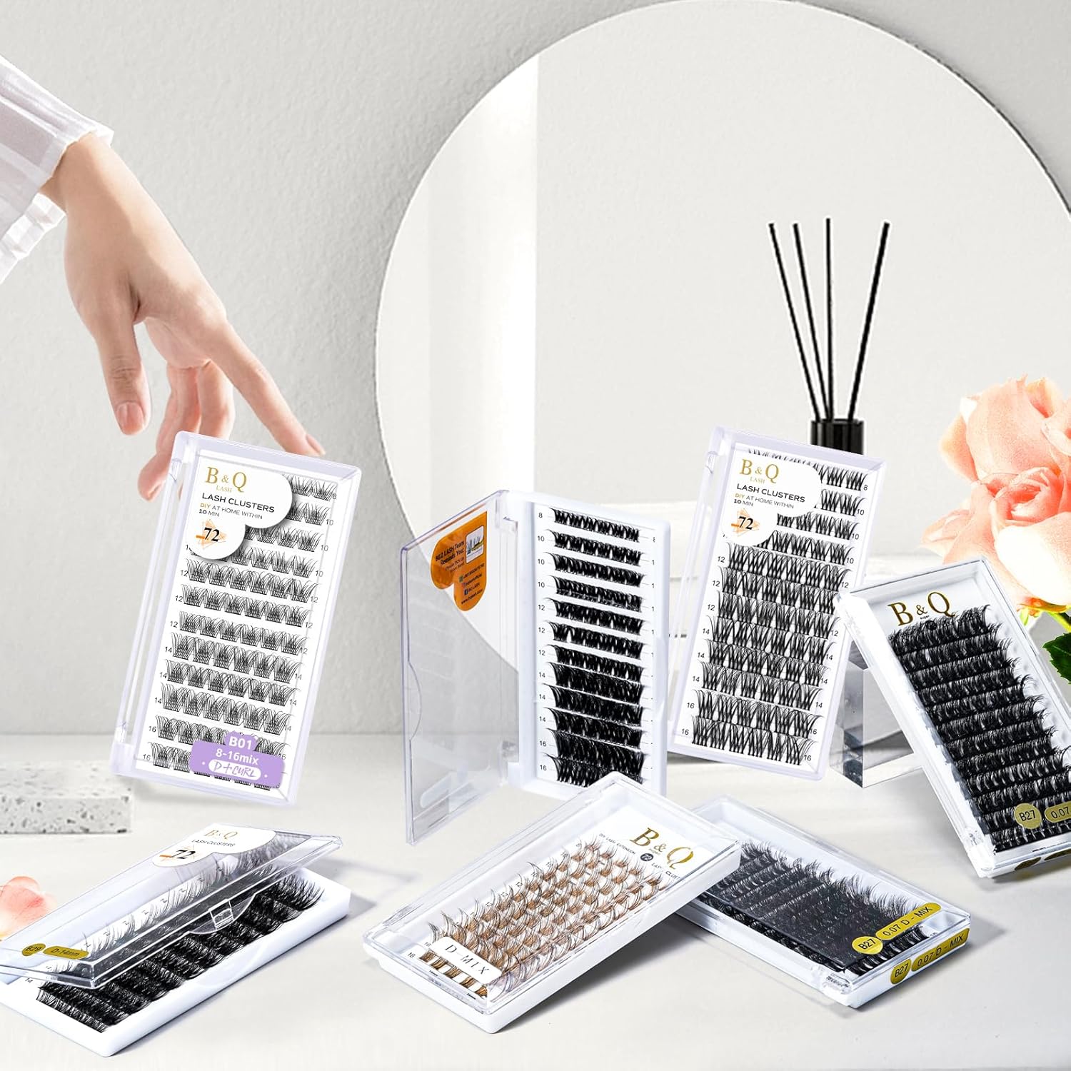 - 【Great Quality】: B&Qaugen cluster lashes look real, not plasticky, gorgeous results, and lash clusters do not easily fall apart. They are reusable with proper care. Easy to take off and these individual eyelashes will not be broken when getting them off the backing with tweezers. The lash clusters last for weeks. Soft, lightweight, vegan, knot-free, and matte dark.