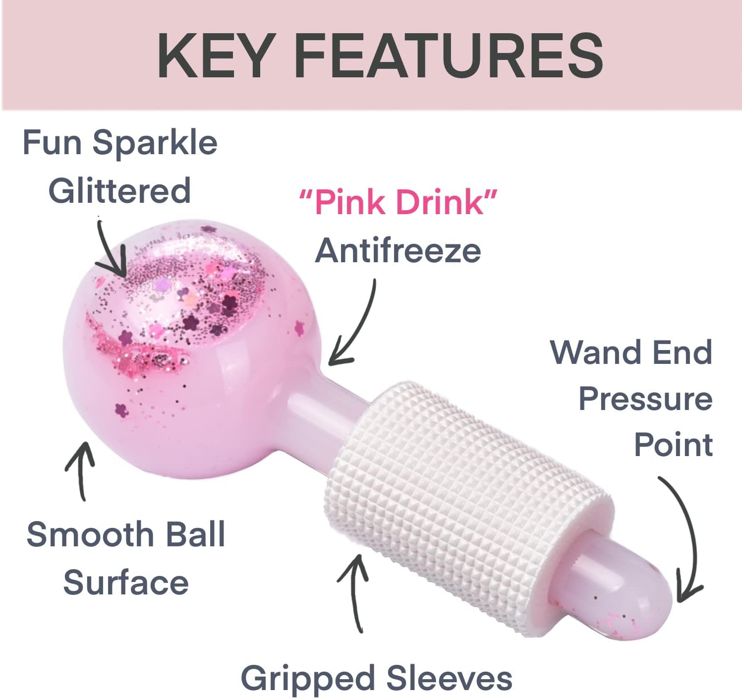 Ice Globes for Facials – Facial Tools for Face & Eye Puffiness Relief, Cool Skincare Cryo Tools - Pink Drink Glitter