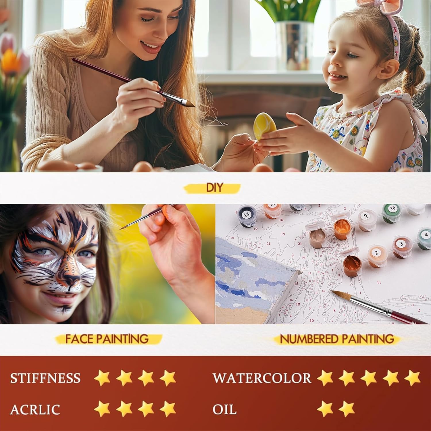 - Sturdy and Durable - Carefully handcrafted from quality materials; Secured with high quality aluminum double-crimped ferrules with sturdy birch wood handles, No Shedding, No Flaking, Long-Lasting, handles are the perfect length designed for comfort controlling. Well balanced light-weight handles feel good in your hand.