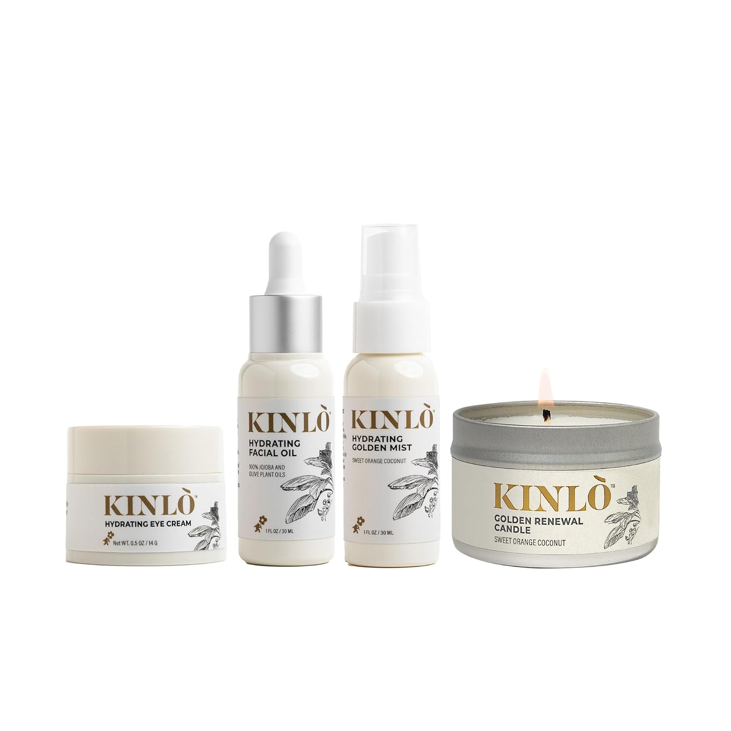 Kinlo Self Care Kit - Facial Oil, Facial Mist, Eye cream, Sweet Orange Coconut Scent Candle | Home SPA Gift Set Mother's Mother's day gift day gift | Black Owned Skincare | Made in USA