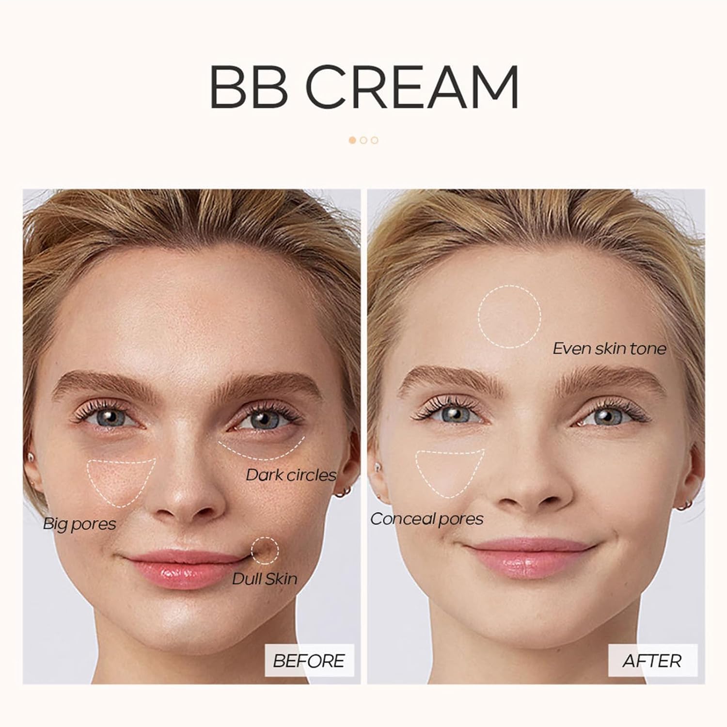 - 【Light Coverage Foundation】Texture of BB Cream is light and fresh-feeling. Available in 6 shades, instantly matches your skin and transforms to your perfect shade for a flawless, bare skin finish, making it perfect for all skin tones.