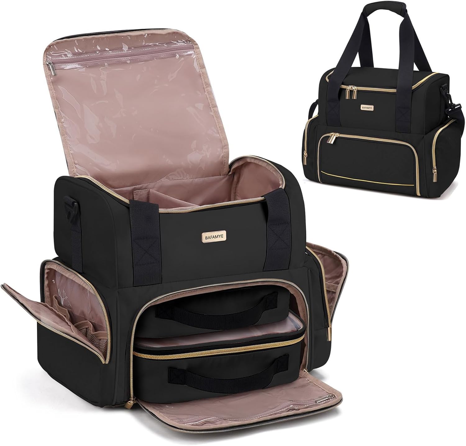 - LARGE CAPACITY: Dimensions 14.2x9.1x11.8in. The travel cosmetic case features double-layer design and multiple storage to organize your all cosmetics. Top compartment comes with detachable dividers for convenient customization to your storage needs