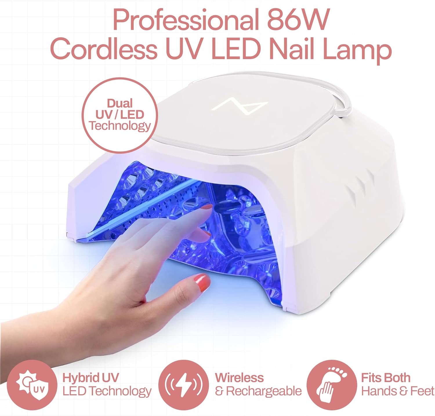 GlowPro Professional Hybrid 86W Wireless Rechargeable LED Nail Curing Lamp - Dries Gel Nails Fast, Ideal for Manicure & Pedicure (Ombre Orange)