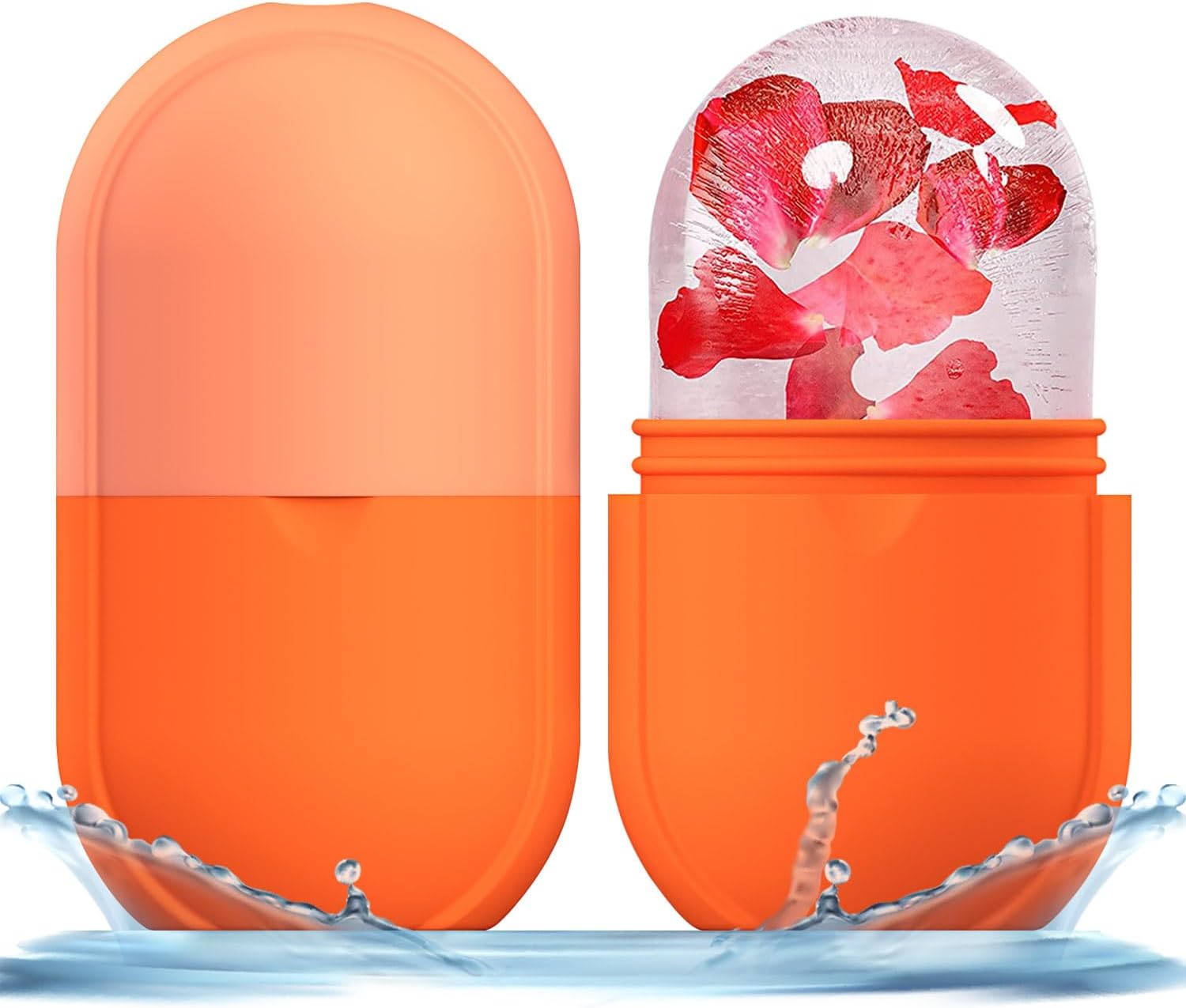 KOGITI Face Ice Roller & Mold - Beauty Facial Massage Tool for Puffiness Relief, Ice Cube Holder (New-Orange)