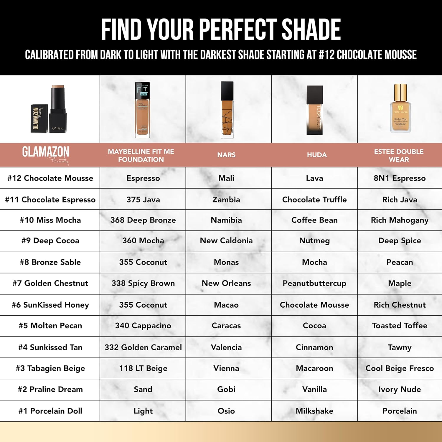 Glamazon Second to None Foundation Stick, Sunkissed Honey, Light-to-Full Coverage, Weightless Makeup With a Glowy Natural Finish
