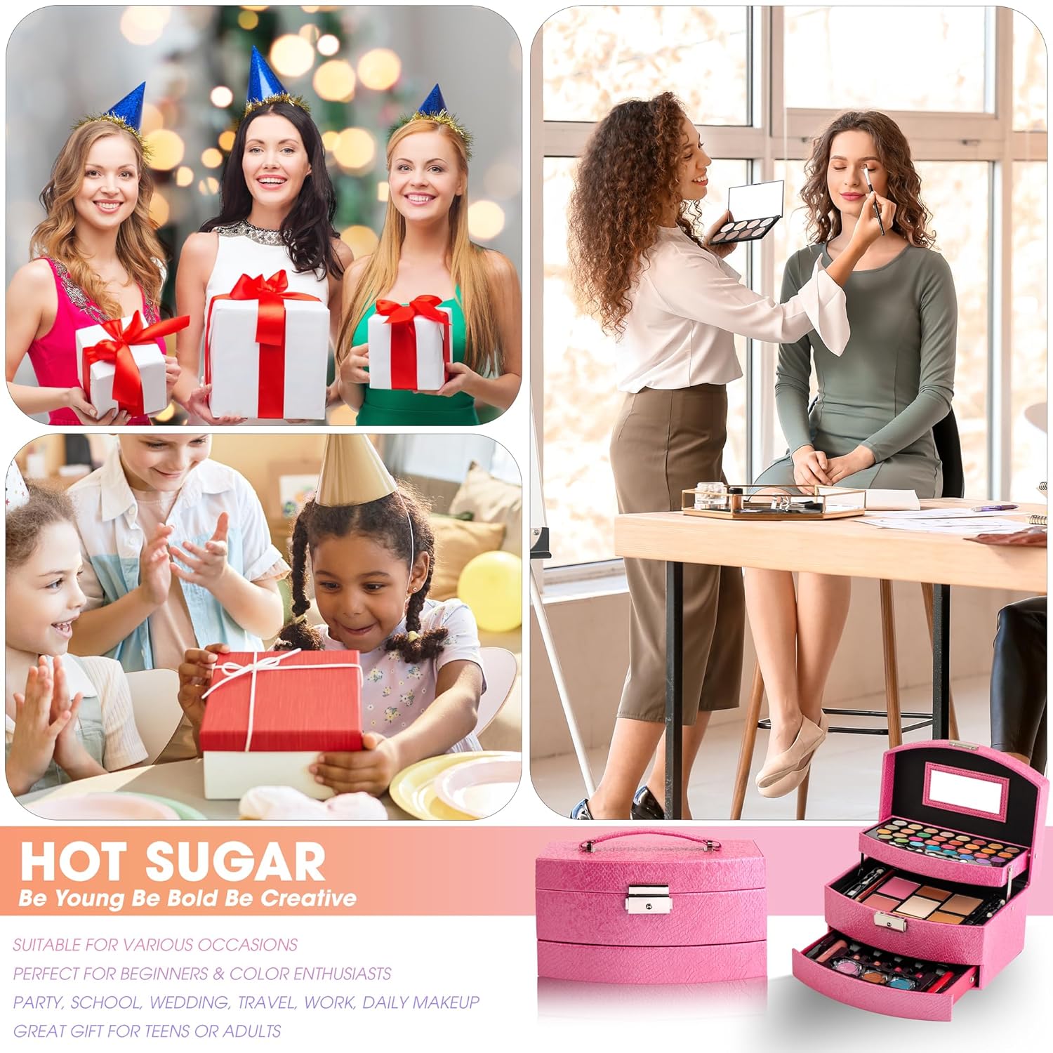 Hot Sugar Girls Makeup Kit for Birthday Gift, All in One Beginner Makeup Kit for Women Full Kit, Christmas Makeup Set for Teens 10 12 13 16 Includes Real Cosmetics and Makeup Tools (Red)