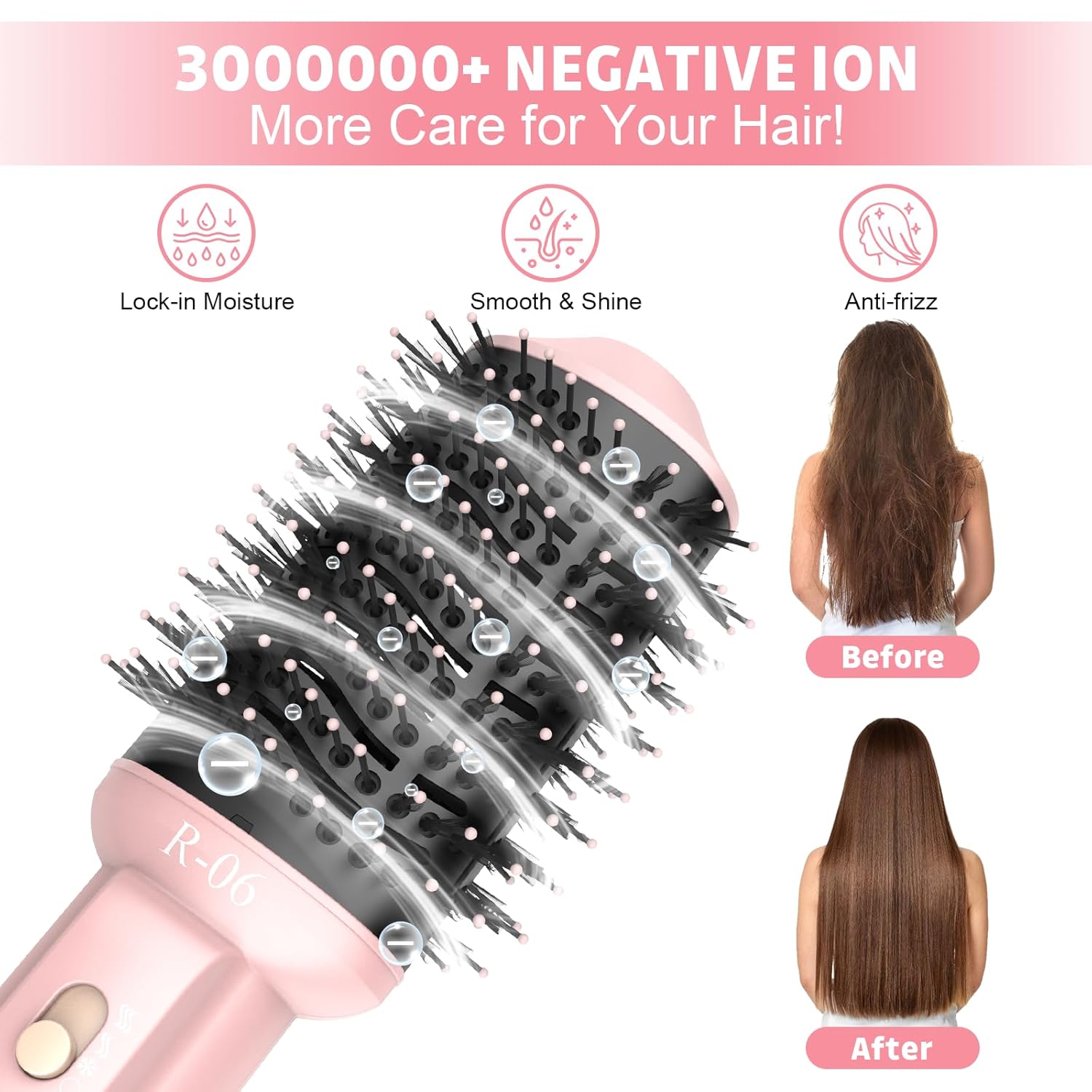 - 【4 IN 1 Drying & Smoothing & Volumizing & styling Hair】: The unique oval brush design smoothens the hair. Made with nylon pins and tufted bristles, it provides detangling, enhanced volume and better control.Different from traditional hair dryers, this volumizer can be positioned closer to the scalp to achieve maximum lift. With 360° surrounding wind and a 50% larger drying area, it allows you to save at least half the time needed for drying and styling your hair!!