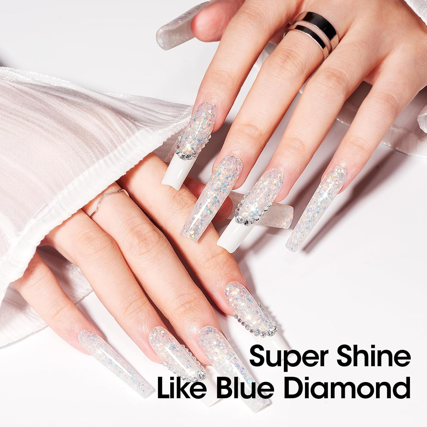- Crystal Clear & Highly Translucent: Gellen’s Blue Diamond Top Coat has a light blue tint but is highly translucent and non-fluorescent, allowing the underlying color of your gel polish to shine through. Its clear, glass-like appearance enhances the vibrancy of your nails without altering their original color.