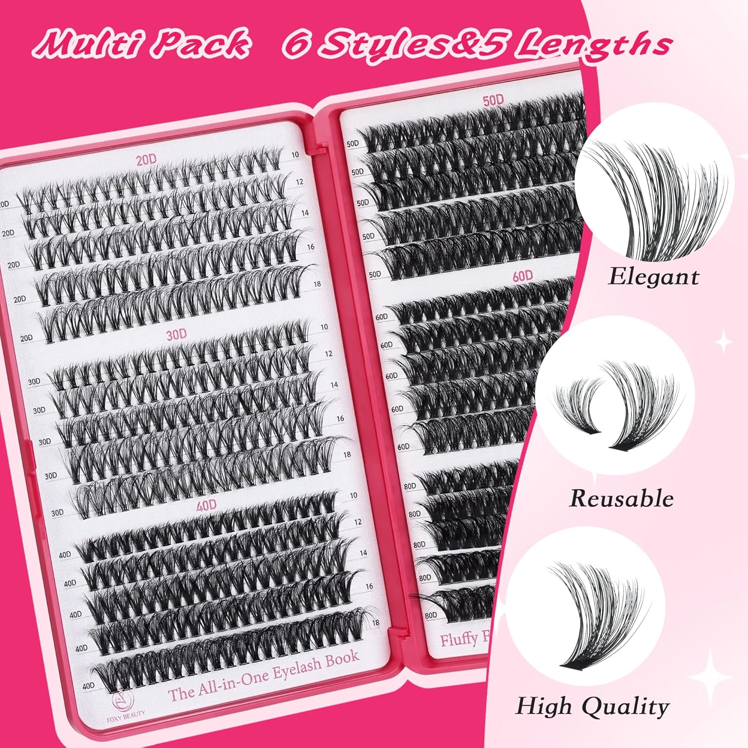 Lash Clusters 600PCS - Eyelash Clusters 20D+30D+40D+50D+60D+80D Wispy Individual Lashes D Curl Lash Extension 10-18MM Natural Lash Clusters DIY Cluster Eyelash Extensions for Beginners
