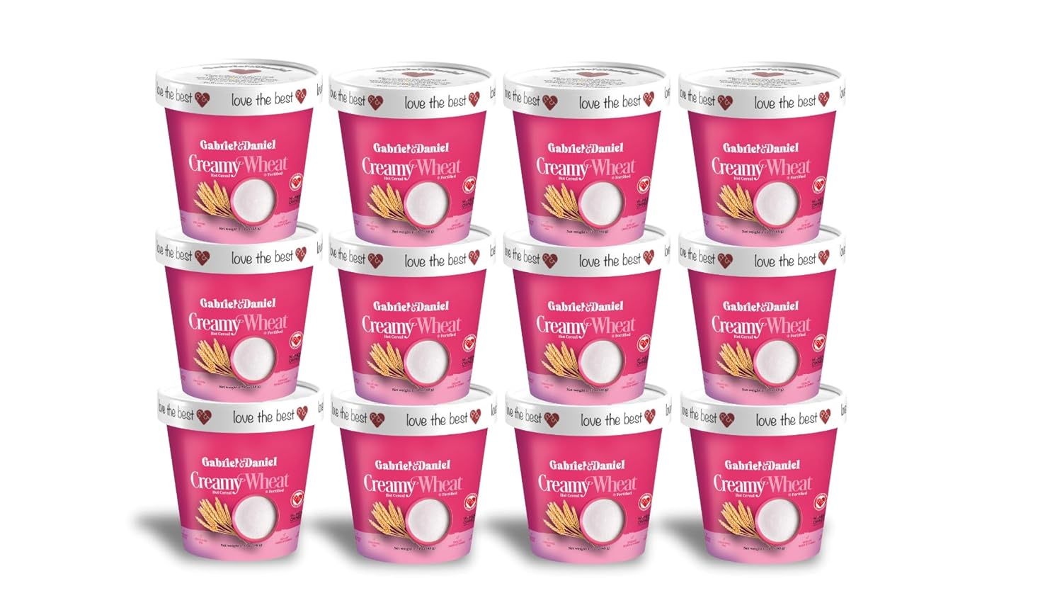 Gabriel & Daniel Organic Instant Creamy Wheat (Farina) Hot Cereal Cup – Non-GMO, Pure and Organic Breakfast Cereal – Rich in Iron & Vitamin C for a Nourishing and Quick Meal – Smooth & Creamy Texture (Pack of 12)