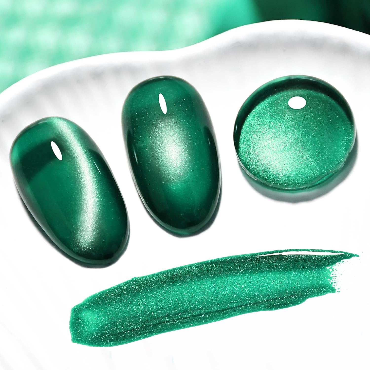 - You’ll Received:1Pcs Jelly Cat Eye Gel Nail Polish Dark Green.With the built-in Magnet, you can use the magnet to create desired pattern before curing.It creates a gorgeous momentum for your nails.( Need U V Lamp)