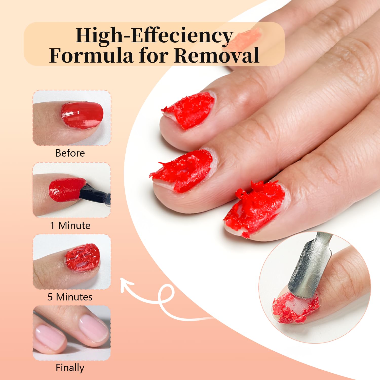 - New Way To Remove Gel Nail Polish: Quick-acting gel nail polish remover softens the gel nail polish in short time, and latex tape reduces irritation to sensitive skin around the nails. After removing the gel nail polish, use cuticle oil to deeply moisturize and strengthen the nails
