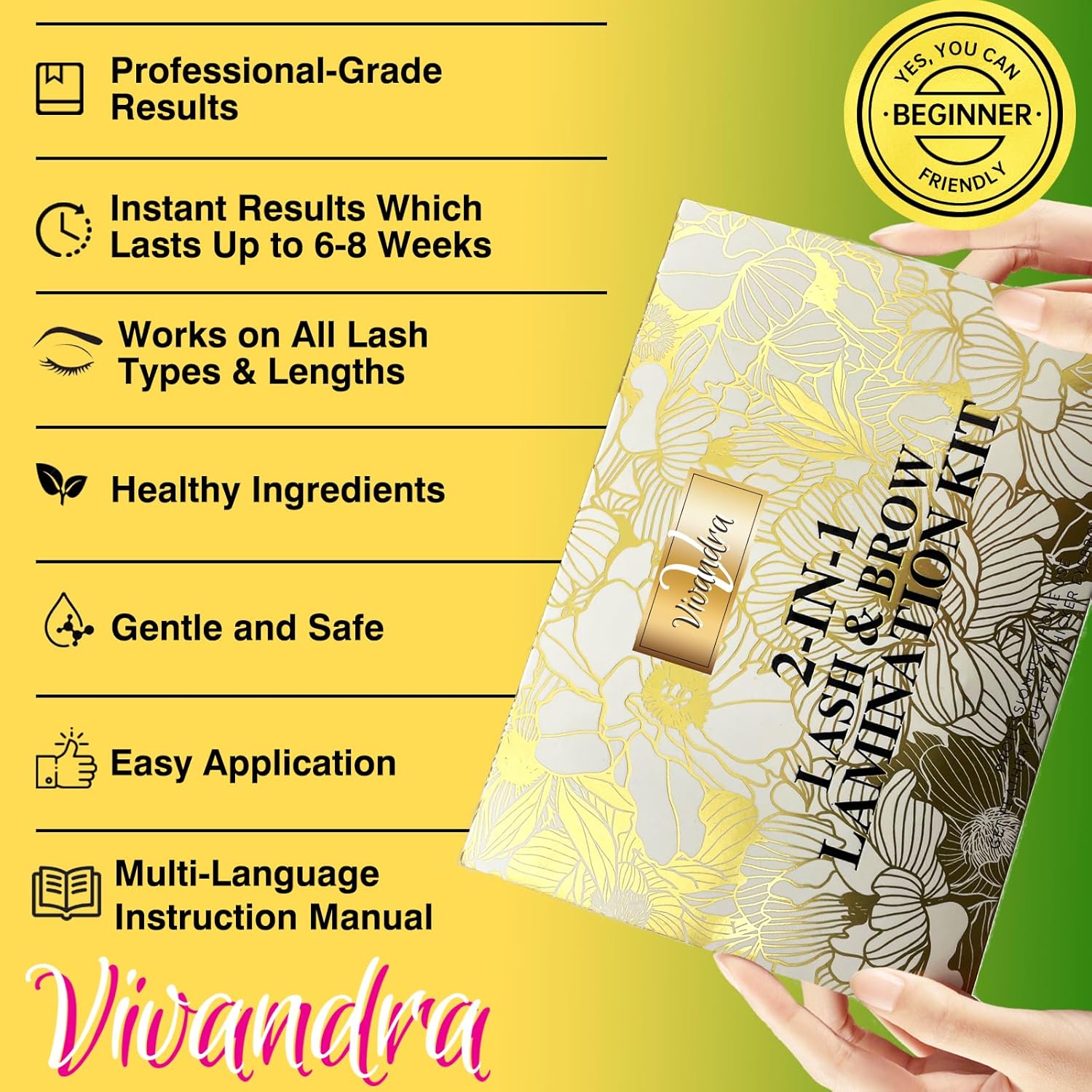 Lash Lift Kit and Brow Lamination Kit 2-IN-1, Professional Eyelash Lift & Eyebrow Lamination for Fuller Brows & Long-Lasting Curl, At Home Salon-Quality DIY Kit with Easy Instructions
