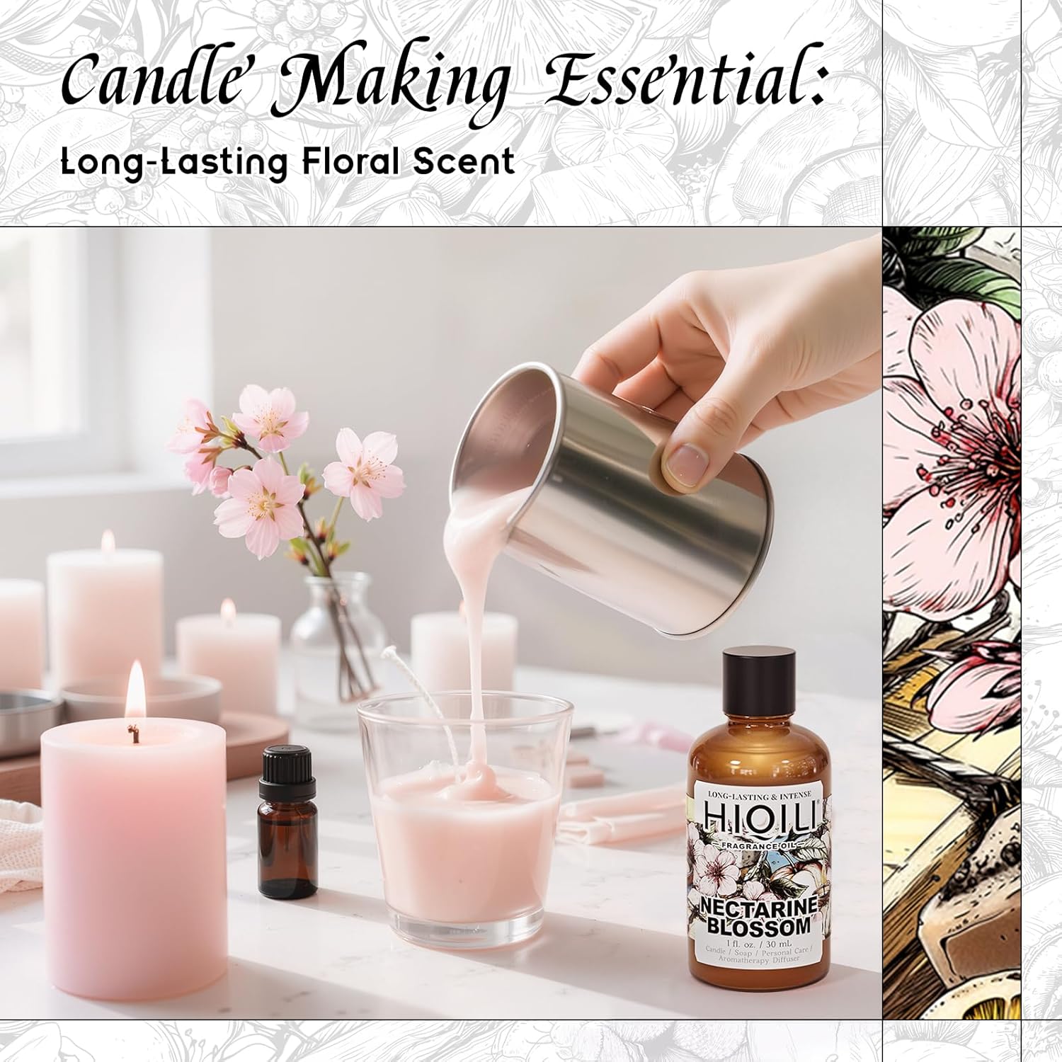 HIQILI Nectarine Blossom Fragrance Oil for Candle & Soap Making, Essential Oil Diffuser Use, Add to Body Lotion, Dryer Balls - 1 Fl Oz
