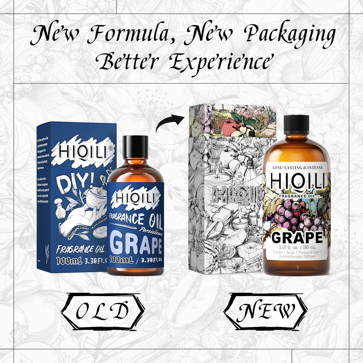 HIQILI Grape Fragrance Oil for Diffuser & Oil Burner, Fruity Scents for Making Candles, Hand Soap, Air Freshener, Long Lasting - 5.07 Fl Oz