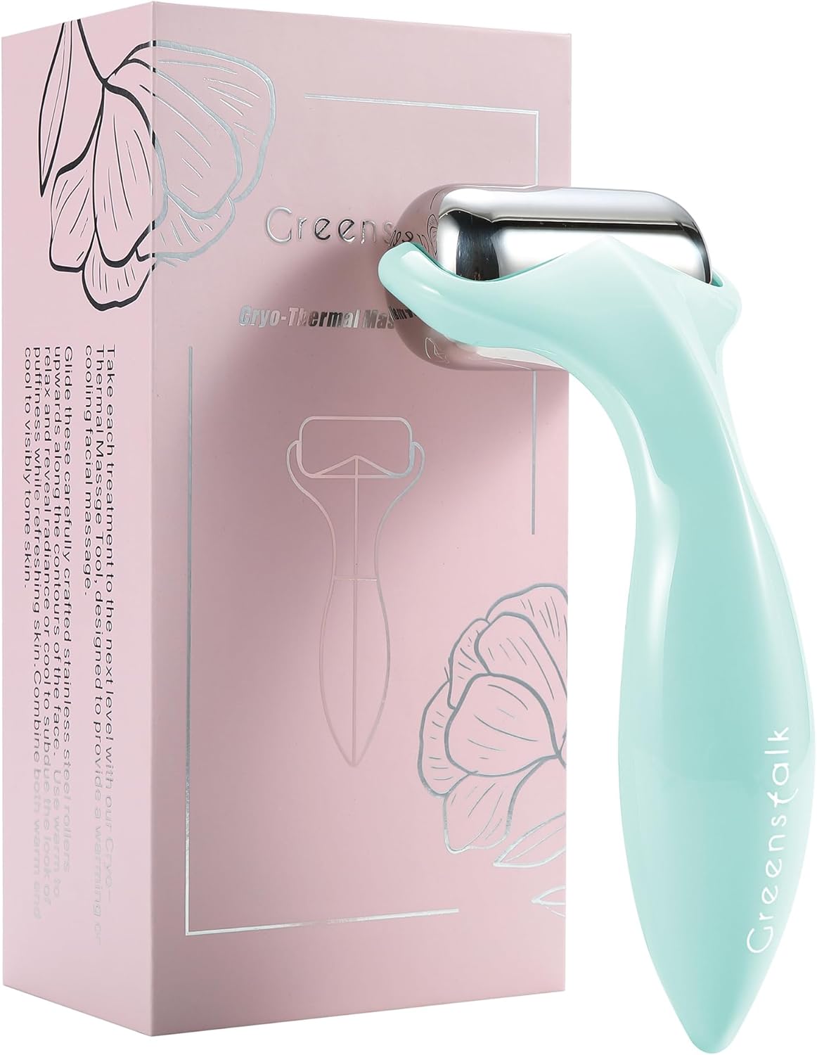 Greenstalk Ice Roller for Face & Eyes – Medical-Grade Stainless Steel Cooling Face Roller for Puffiness Relief, Dark Circles, Skincare Routine – Dual Cold & Warm Therapy, Ergonomic Design (Blue)