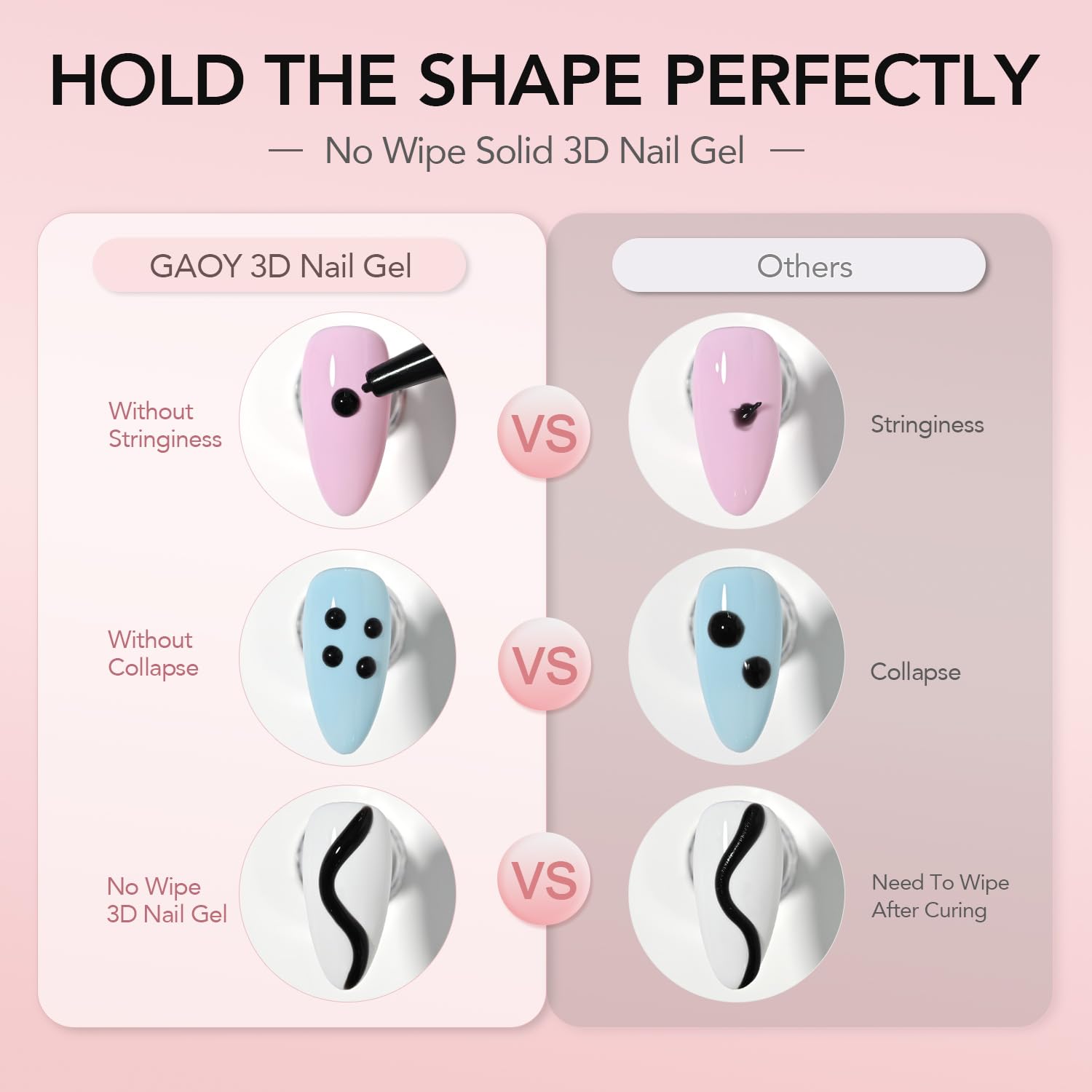GAOY Black 3D Nail Gel, 15g Sculpting Gel for 3D Nail Art Designs Carving, Molding, Painting, No Wipe Gel for Gems & Charms Decoration, Salon DIY Use